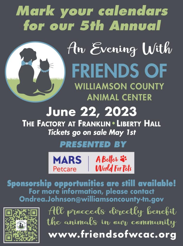 Friends of Williamson County Animal Center (FOWCAC) will host its fifth annual “An Evening with